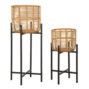 Set 2 suportui pentru ghivece Rattan, Mauro Ferretti, Ø 41x47 cm, ratan/fier, multicolor