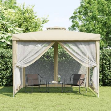 Outsunny Gazebo de Grădină cu Acoperiș Dublu, Foișor de Grădină cu Plasă și Baldachin, 300×300 cm, Bej | Aosom Romania