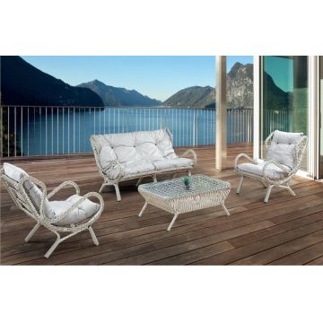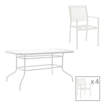 Set de 5 buc masa si scaune de gradina Kliton-Moly aluminiu alb 150x80x74 cm