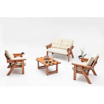 Set mobilier de gradina, Hudson, Abant (2+1+1), Lemn, Crema/Nuca