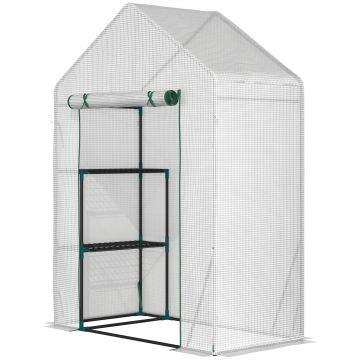 Outsunny Seră de grădină cu 1 ușă, 2 ferestre și 2 rafturi în formă de U pentru legume, plante, flori, copertină PE 140x73x190 cm | Aosom Romania